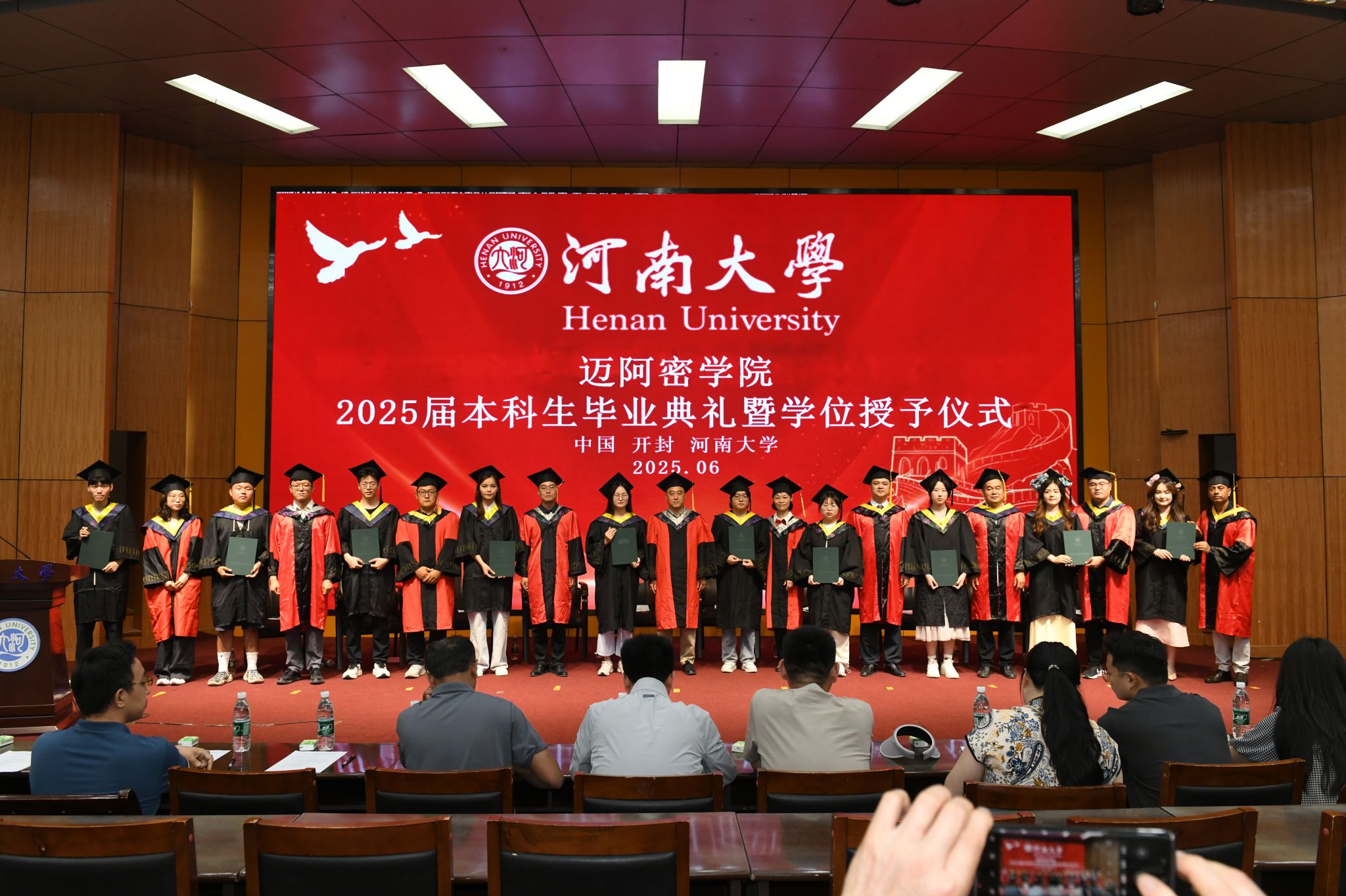 BWIN必赢官方副经理赵伟宣读了《BWIN必赢官方关于授予普通本科毕业生学士学位的决定》。受董事长张锁江院士委托,学院学位评定委员会全体委员、导师代表、领导班子成员共同为2025届本科毕业生一一援正流苏、颁发学位证书,并合影留念。