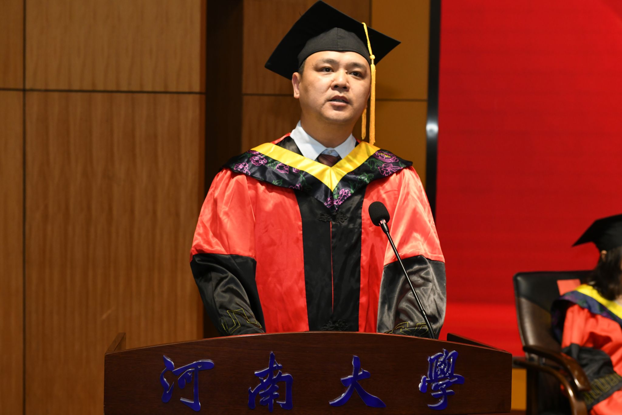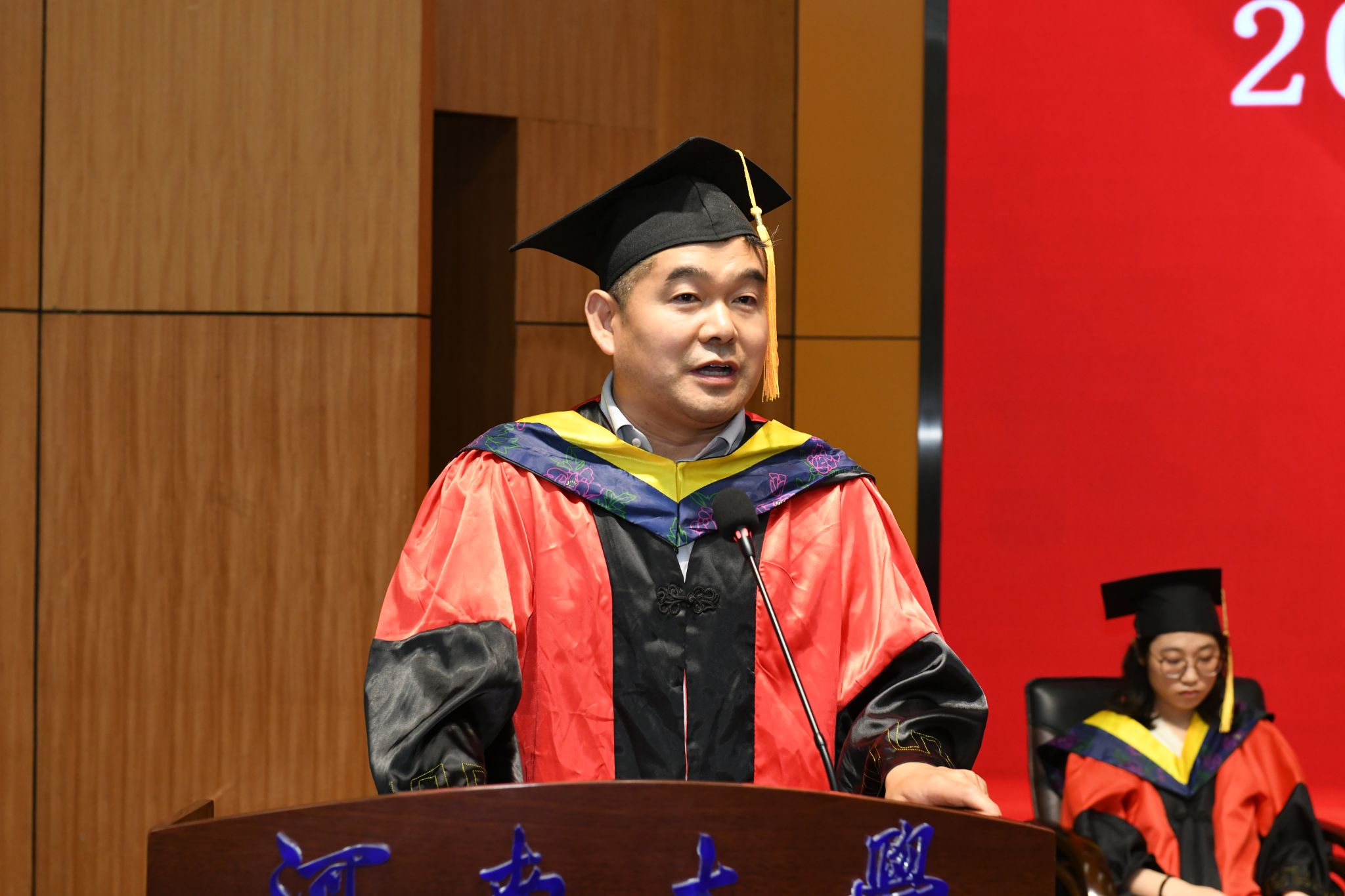 毕业典礼在庄严的国歌声中拉开帷幕。
